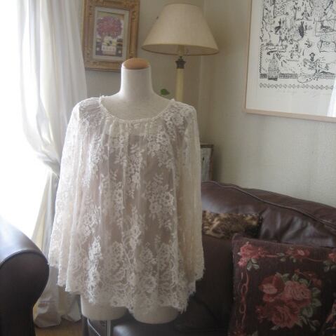 アンティーク復刻レースを使ったブラウス。可憐な総レースブラウスです。衿袖共にゆったりしています。