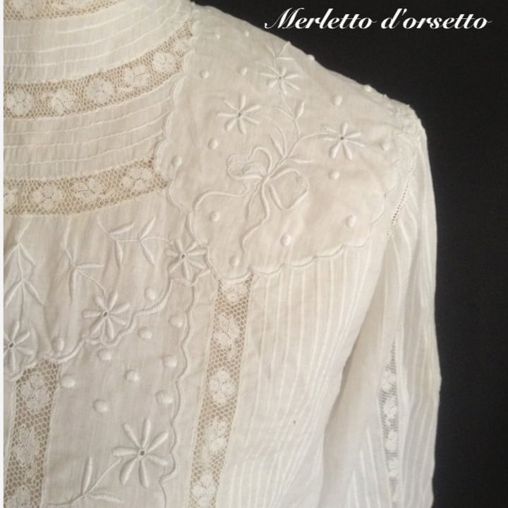 ボビンレースと刺繍の可憐な総レースブラウスです。