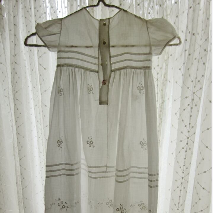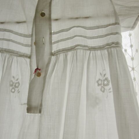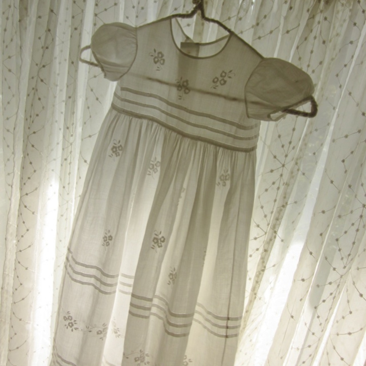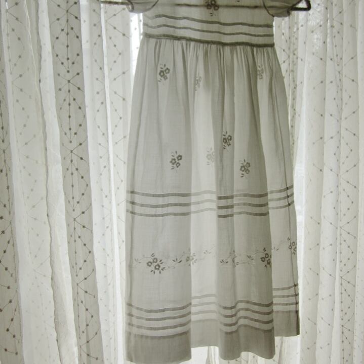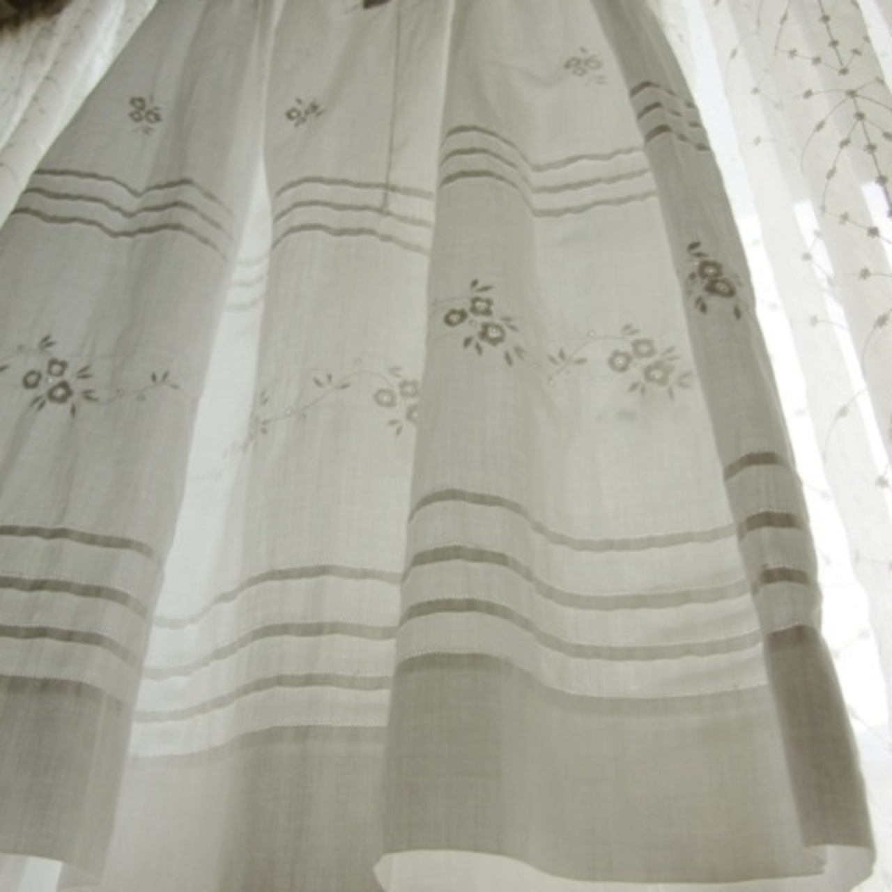 ボーダー状にピンタックが入りの可憐な花の刺繍が全体にほどこされています。