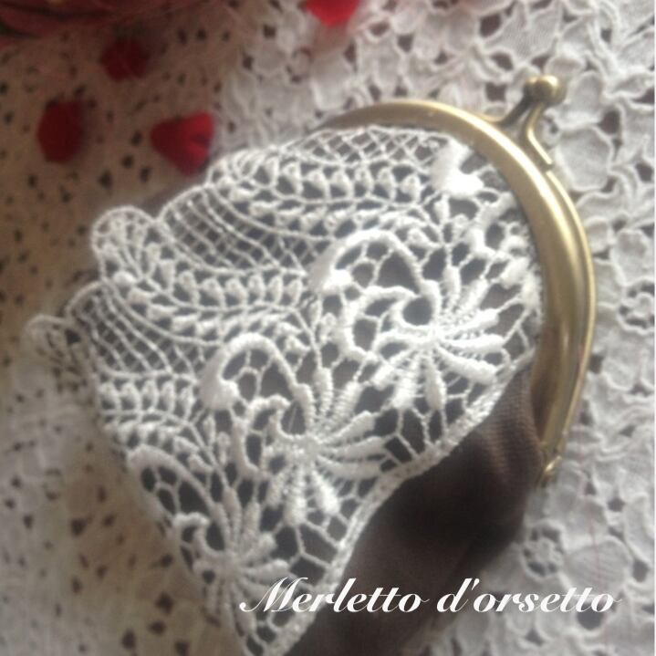 帆布生地にレースをコラージュした可愛いプチがま口です。