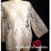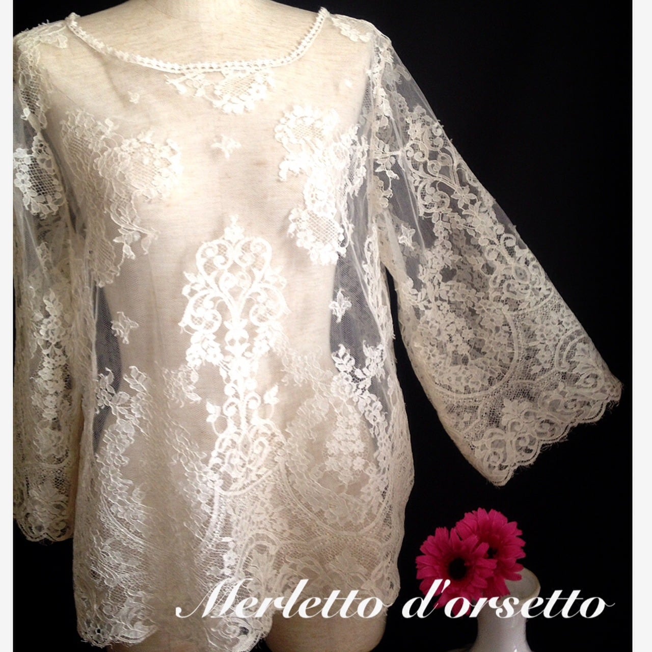 フランスのアンティーク復刻レースを使ったブラウス。裾に可憐な総レースブラウスです。衿袖共にゆったりしています。